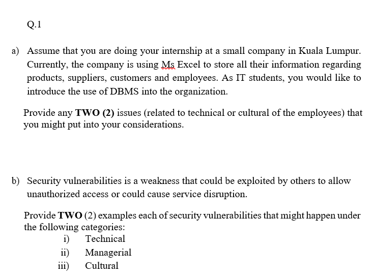 Solved Q 1 A Assume That You Are Doing Your Internship At A Chegg Com